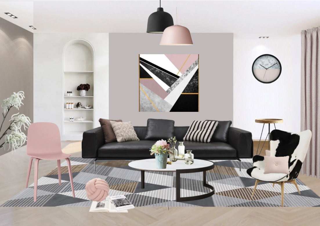 ● 與灰色搭配時,粉色則能夠增添一絲柔和的氛圍,使整個空間更加溫暖而現代。