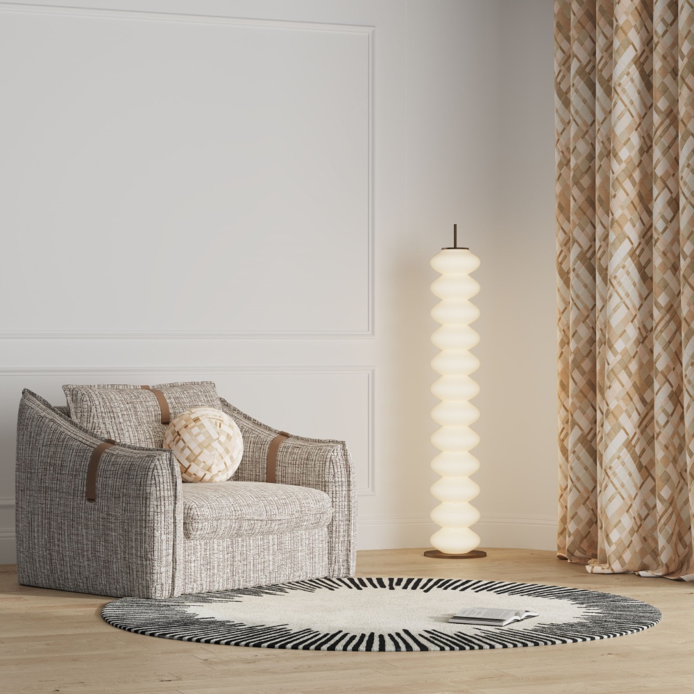 當(dāng)硬裝采用比較百搭的基礎(chǔ)色系,這時的軟裝就可以適當(dāng)應(yīng)用一點(diǎn)黃色,如單椅、沙發(fā)、抱枕,或者是大面積的布藝窗簾。給空間亮點(diǎn),又富有層次感。